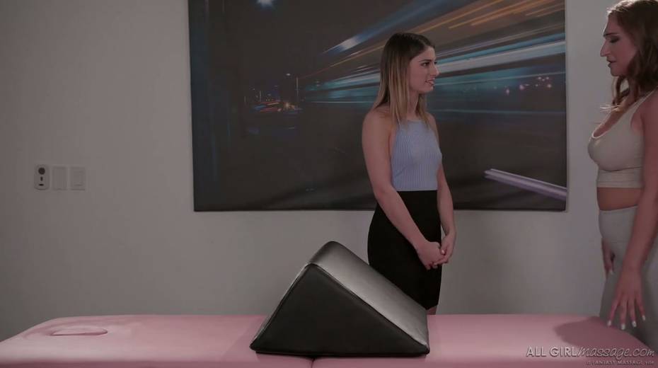 Lesbian masseuse licks and finger fucks pussy of sexy client Kristen Scott