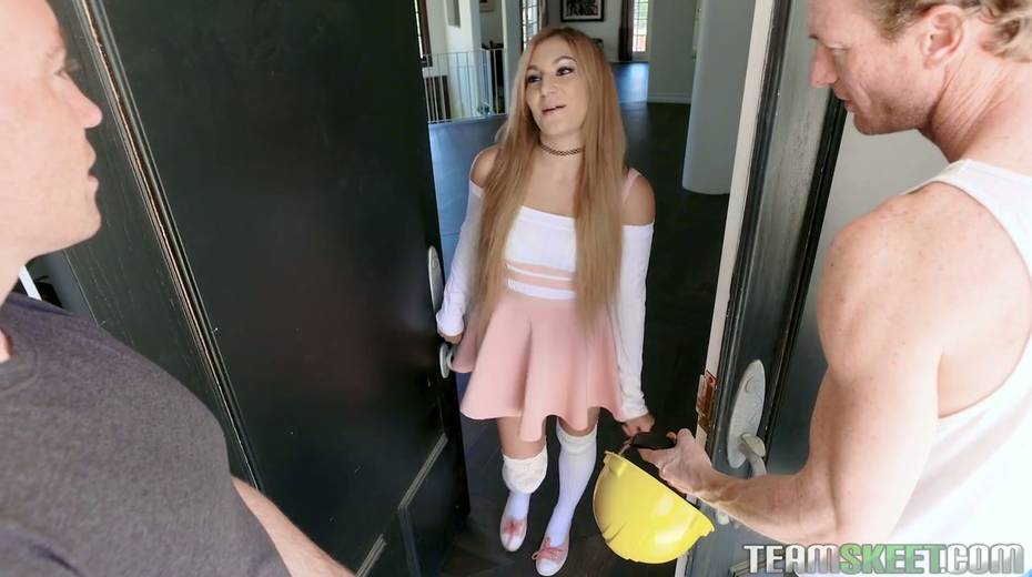 Young housewife Moka Mora hooks up with plumber and his assistant