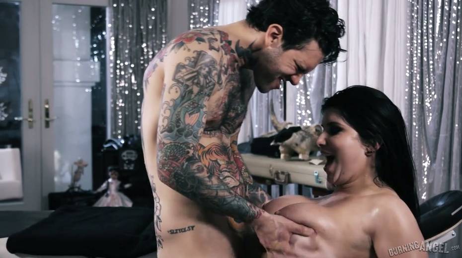 Ample breasted hooker Romi Rain is fucked by hot blooded tattooed jerk