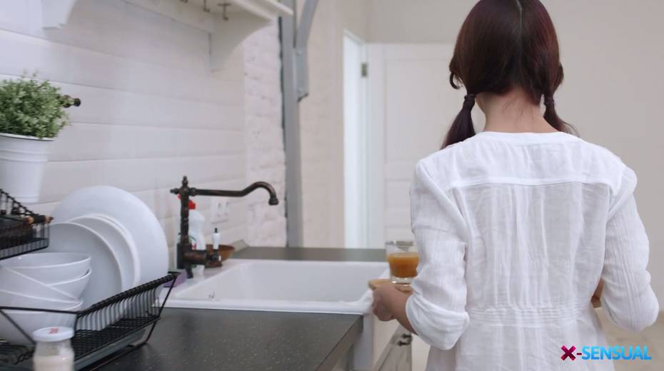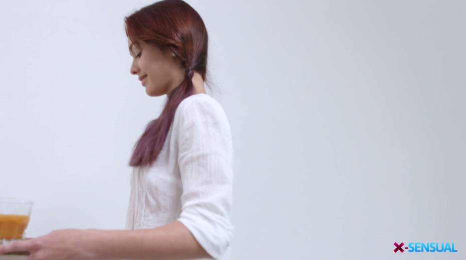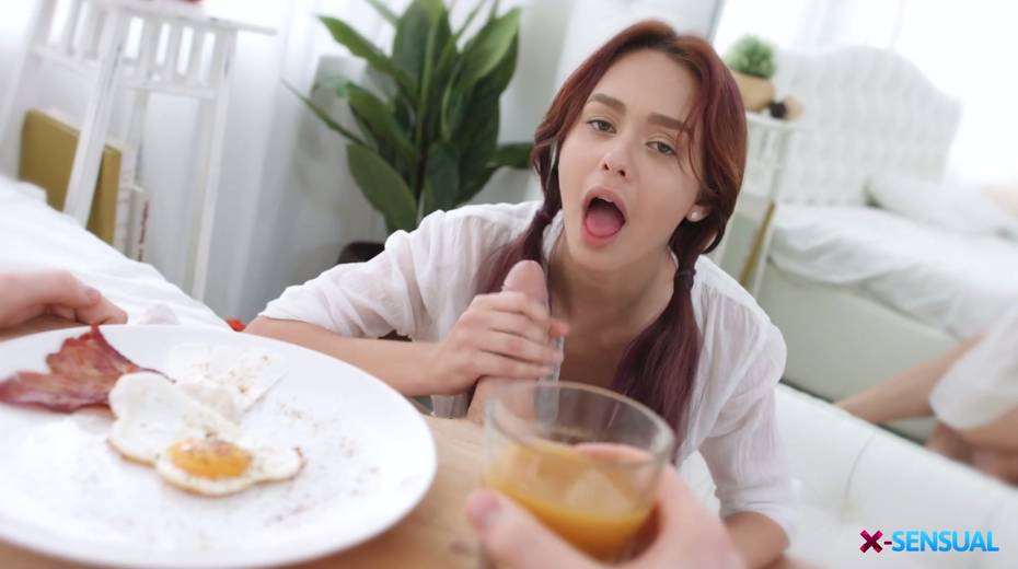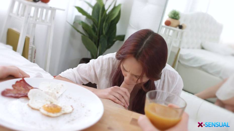Pigtailed red haired girl Michelle Can gives a blowjob in the morning and gets fucked