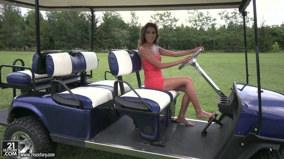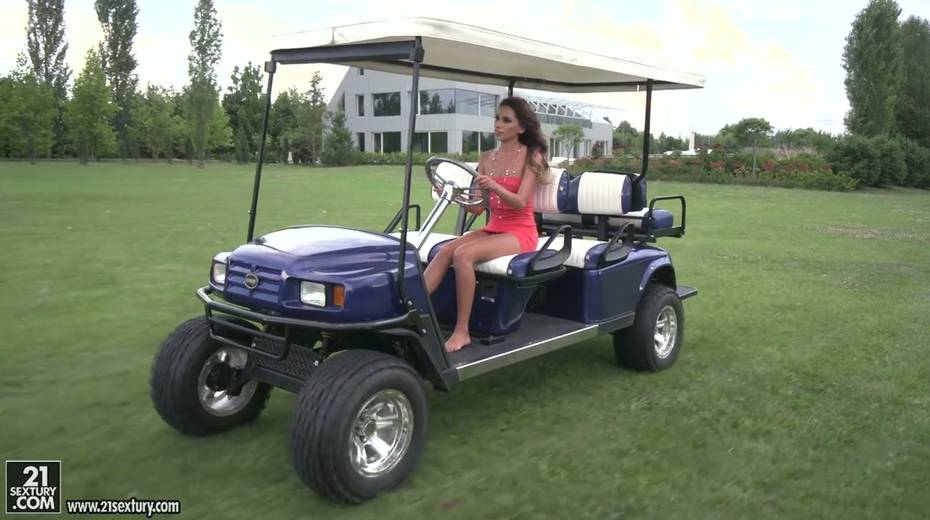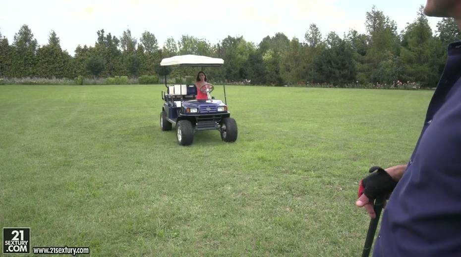 Leggy babe Nicols gives a footjob and gets her pussy fucked on the golf course