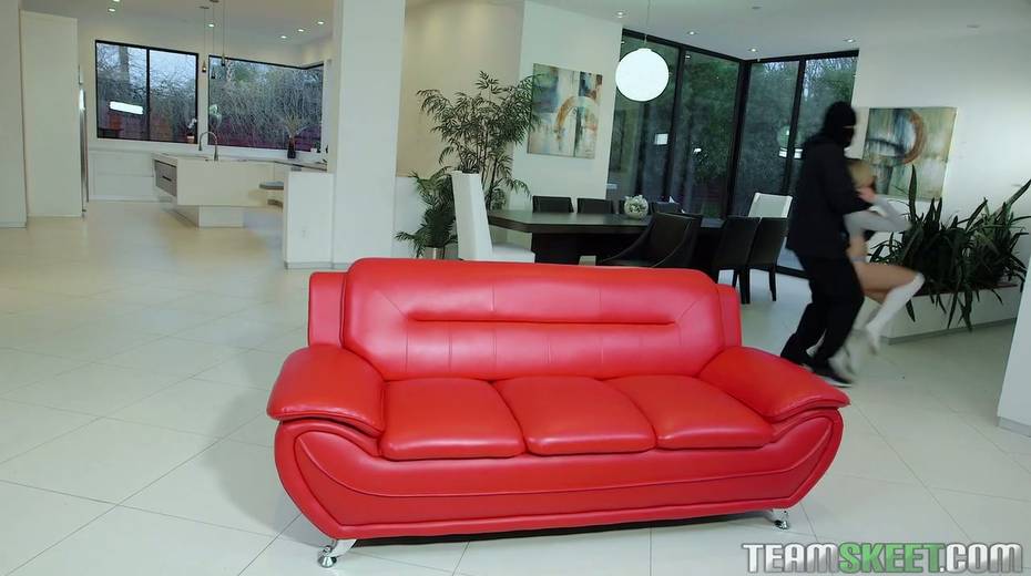 Robber in black mask caught Zoe Clark masturbating her pussy in the living room