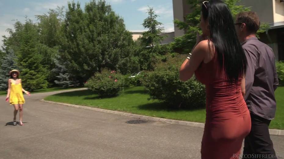 Seductive hookers give a blowjob to hot blooded dude Rocco Siffredi