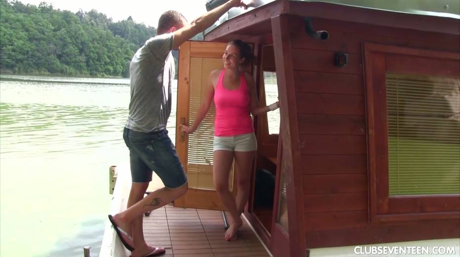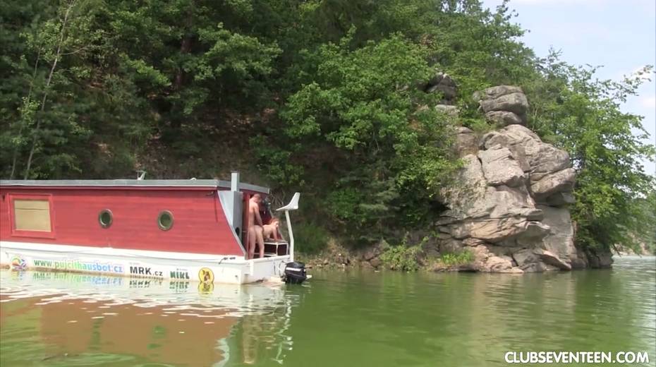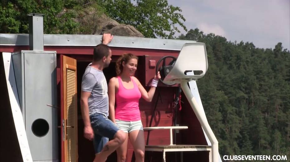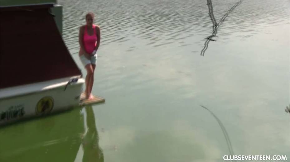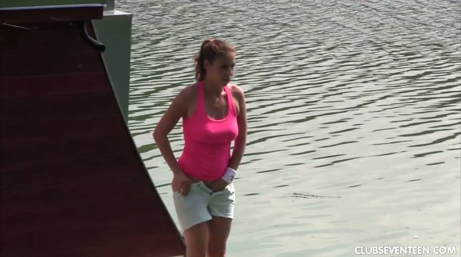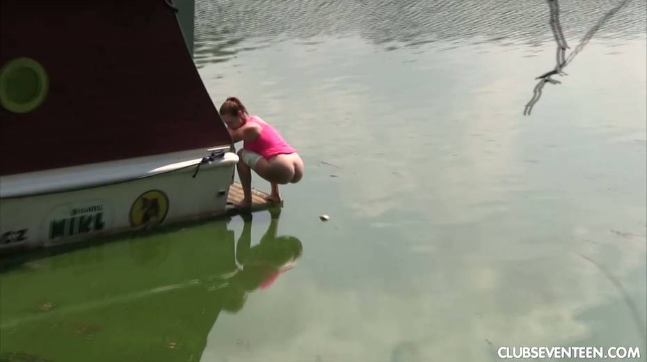 19 yo chick Antonia S pisses in the lake and gets her twat fucked on a yacht