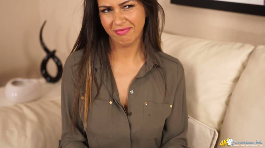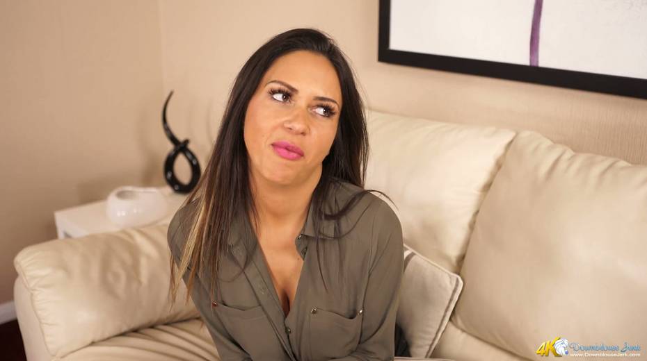 Horny secretary Roxxy Lea shows off her yummy boobies