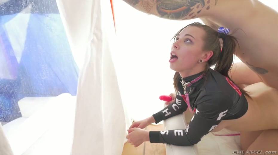 Tattooed jerk fucks face and anus of slutty brunet chick Aidra Fox