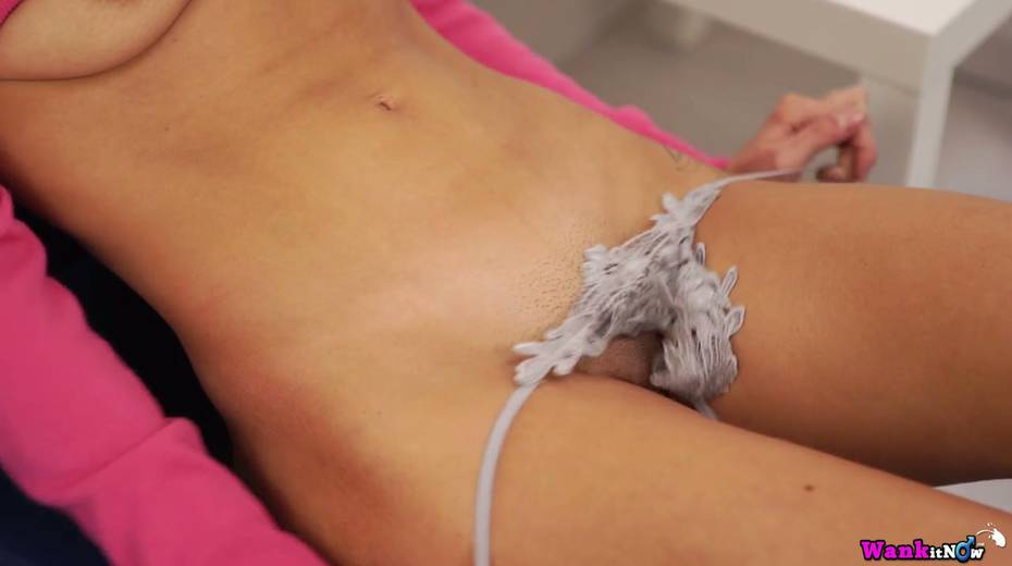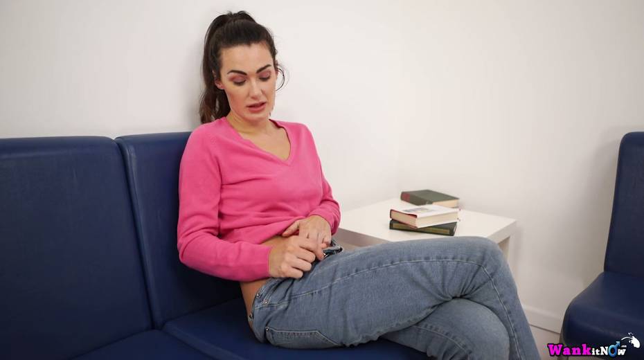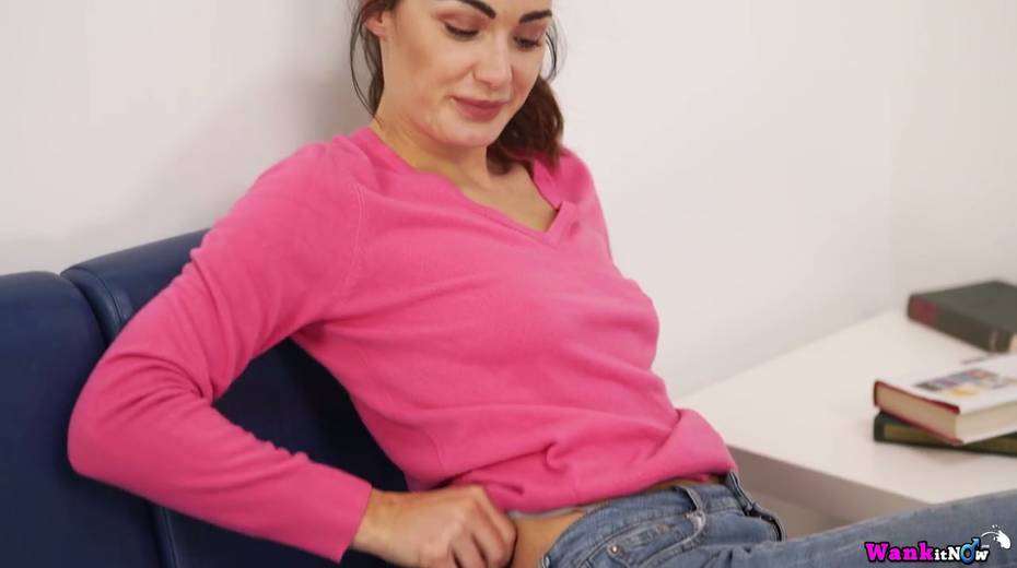 Pretty gal Laura takes off her jeans and shows yummy pussy