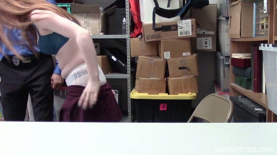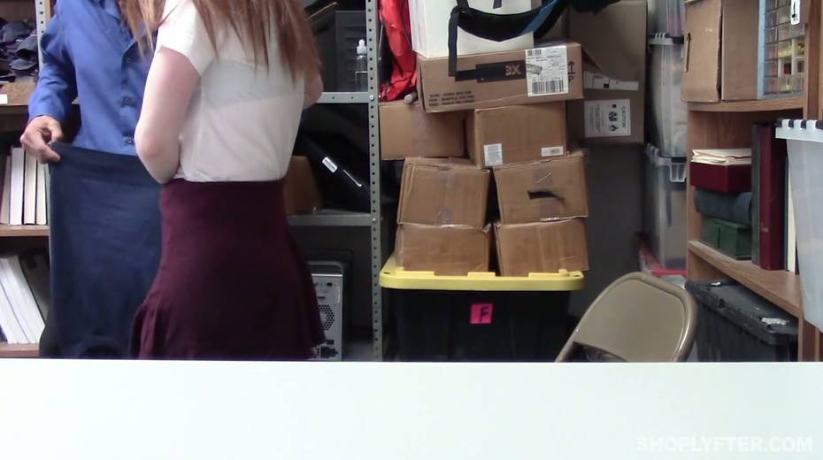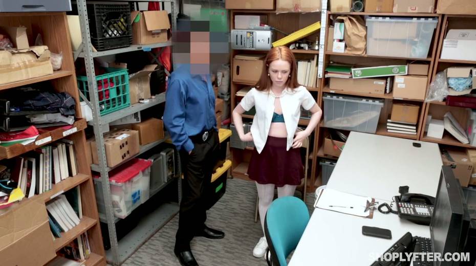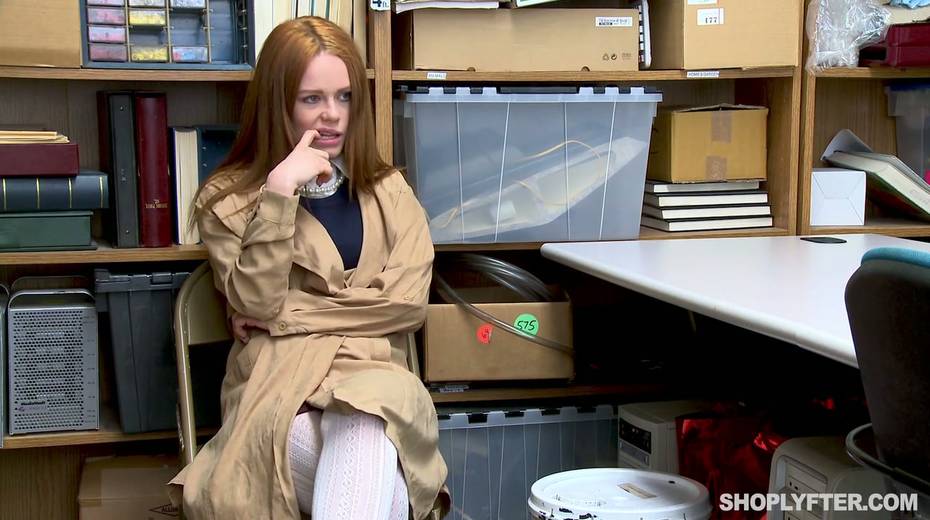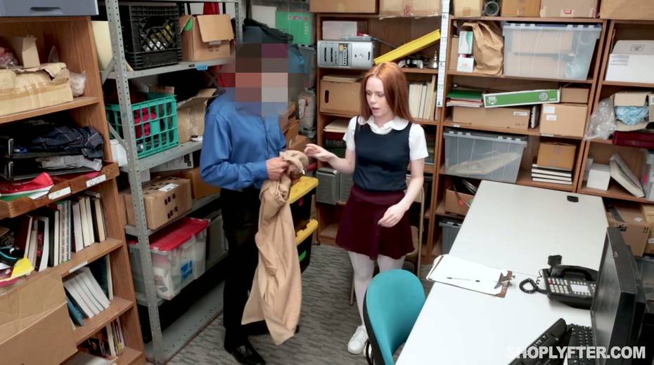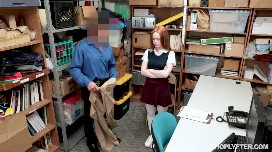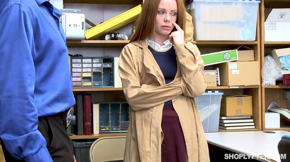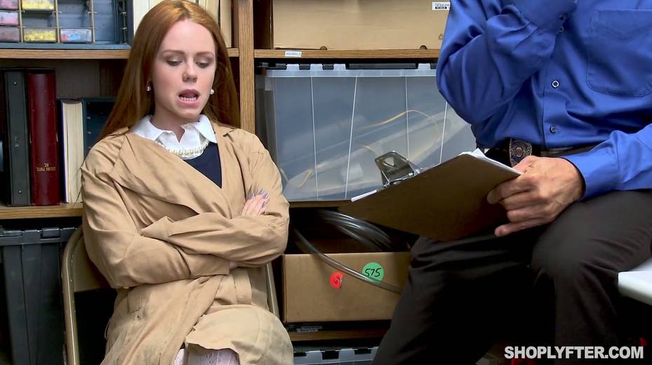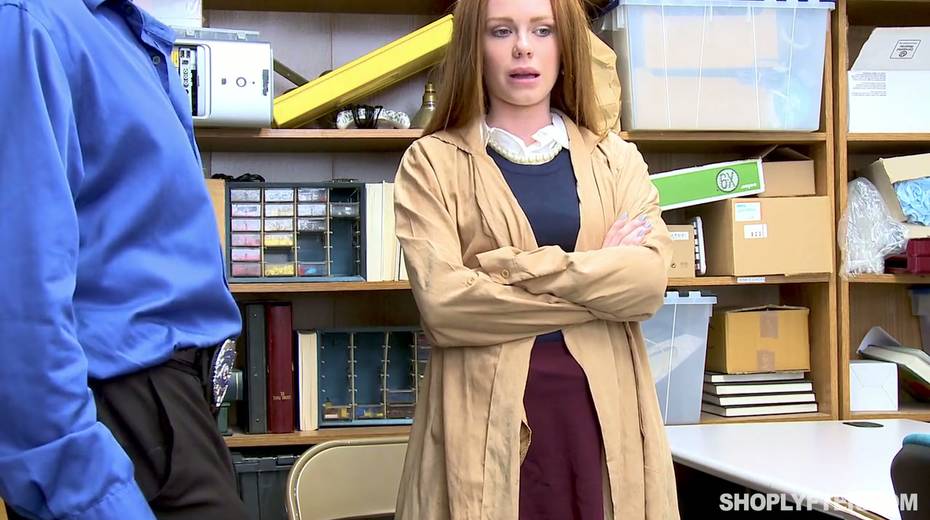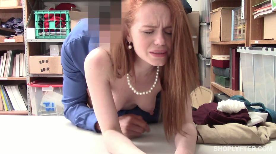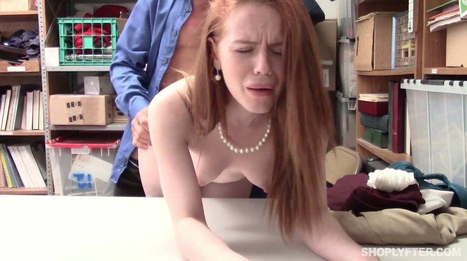 British red haired teen Ella Hughes gets her pussy punished for shoplifting