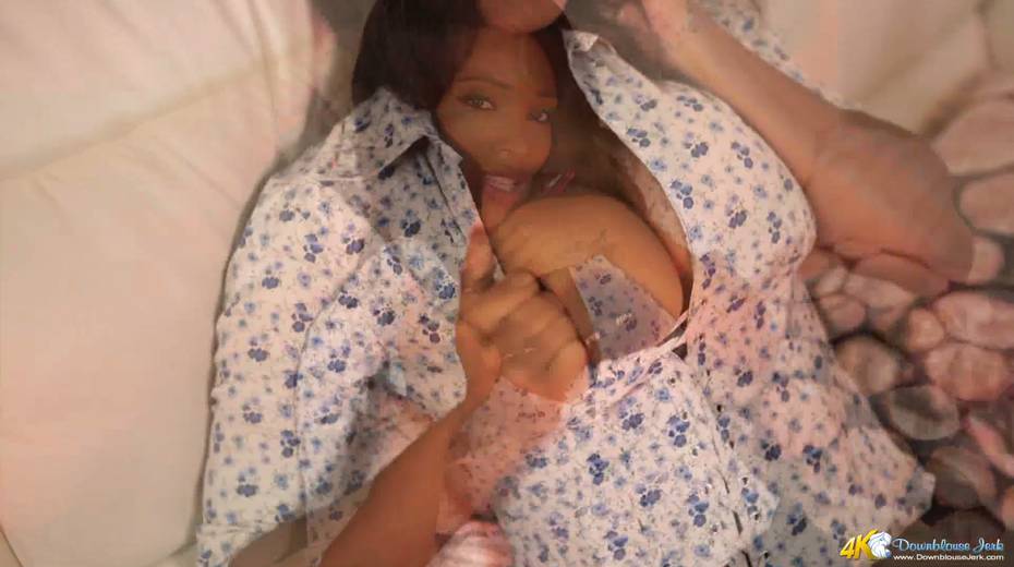 Yummy ebony hottie Kiki Minaj plays with her big boobies
