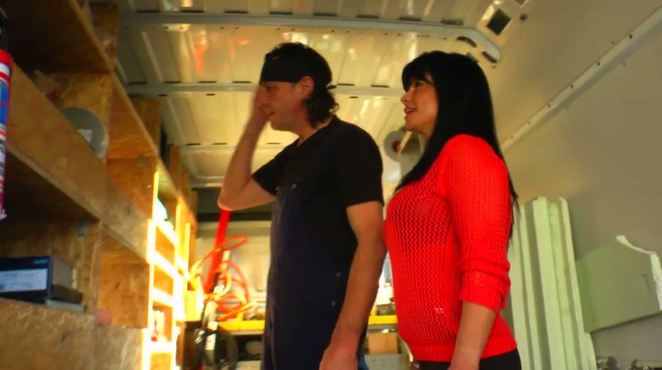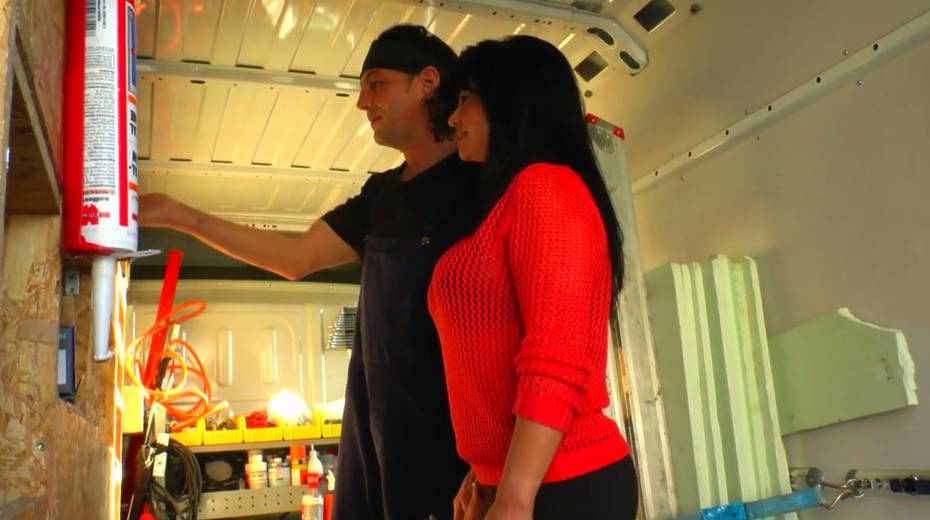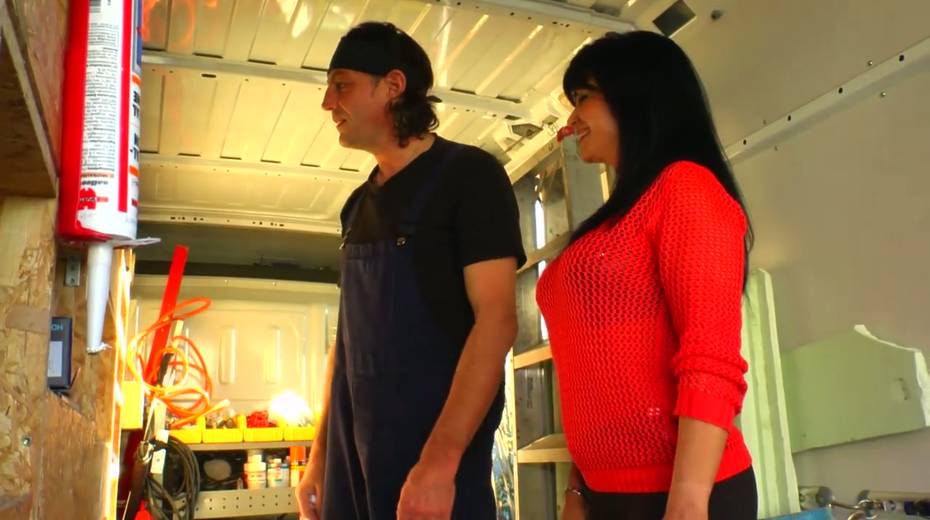 Fake tittied mature brunette gives her head and rides a dick in the van