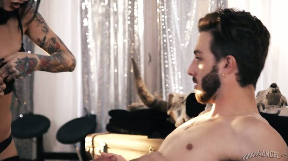 Stunning tattooed hooker Joanna Angel rides a dick reverse and face to face