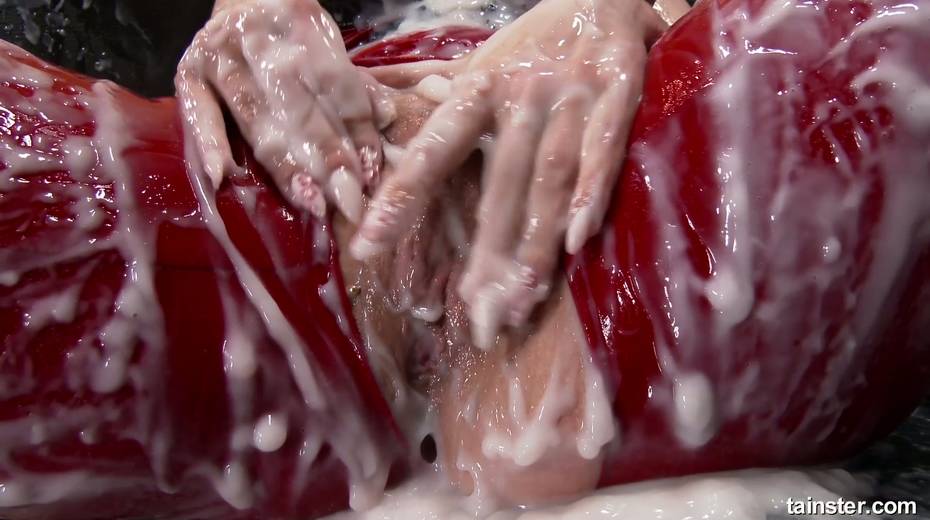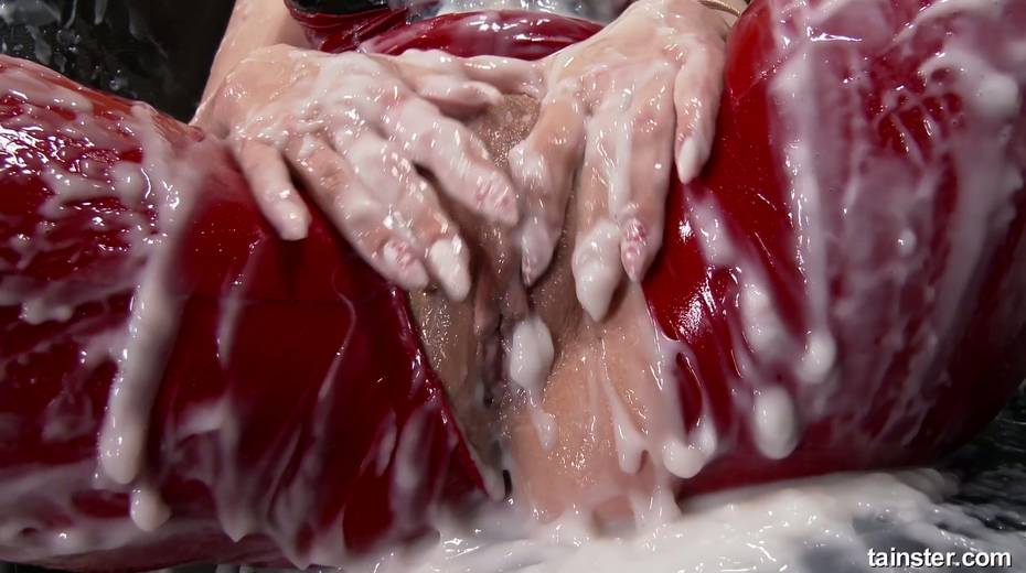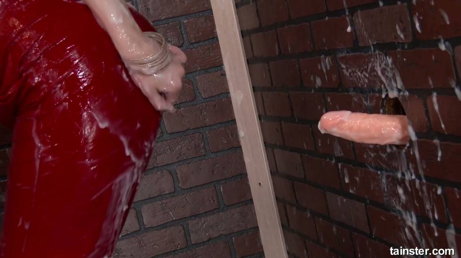 Tantalizing hooker in red clothes gets messy in the glory hole room