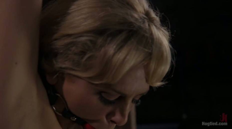 Tied up and suspended seductress Cherie Deville gets her pussy toyed