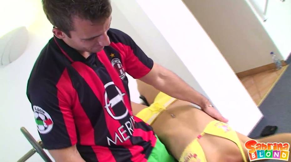 Young blonde Sabrina Blond gets her pussy fucked at the gym