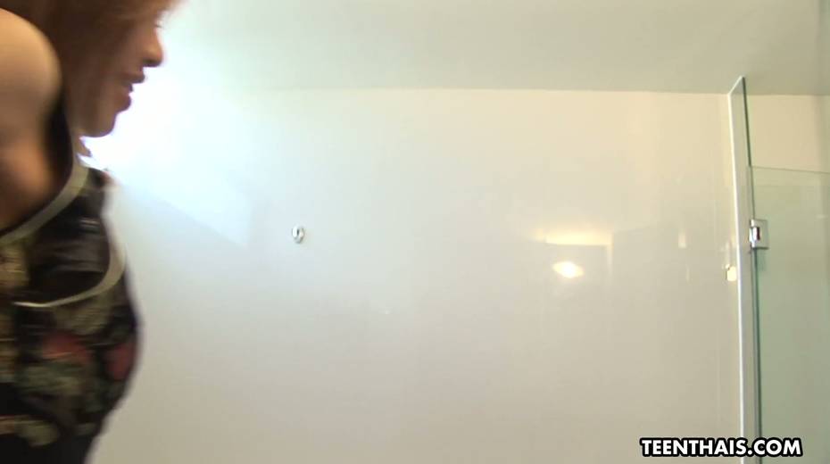 Slutty Thai chick Nok gives a footjob in the bathroom and gets fucked on the bed