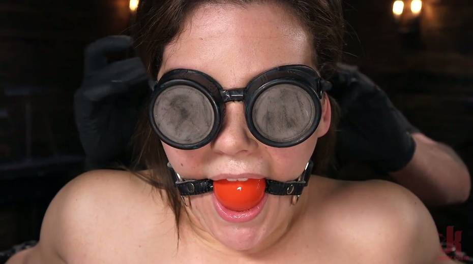 Hardcore anal pounding for tied up and restrained hooker Kimber Woods