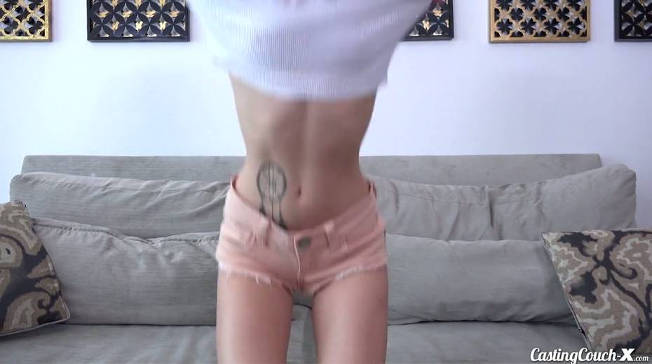 Exciting casting video of yummy skinny flat chested teen Kenzie Kai