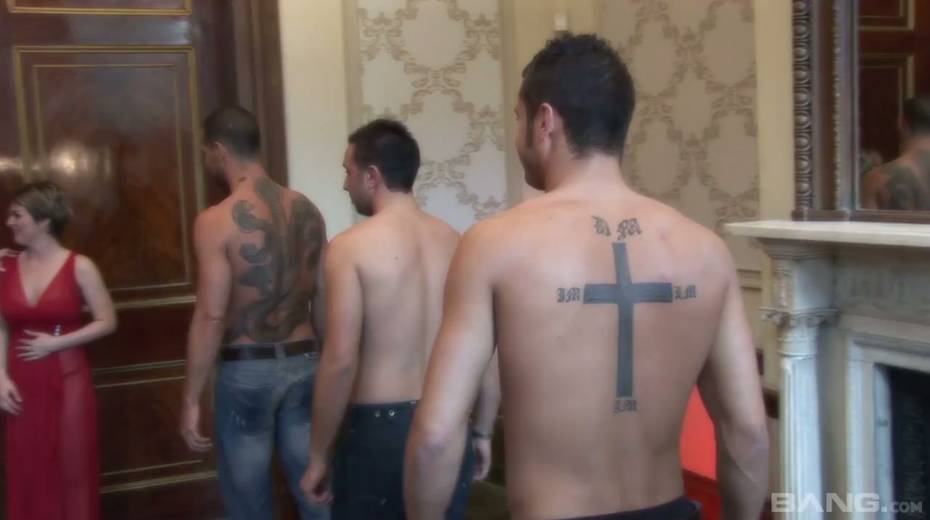 Several hot blooded studs fuck sex-appeal bitches and cum in their holes
