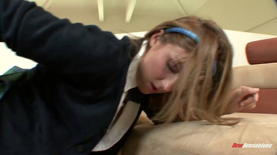 Cute college chick in short kilt skirt is fucked by one horny guy