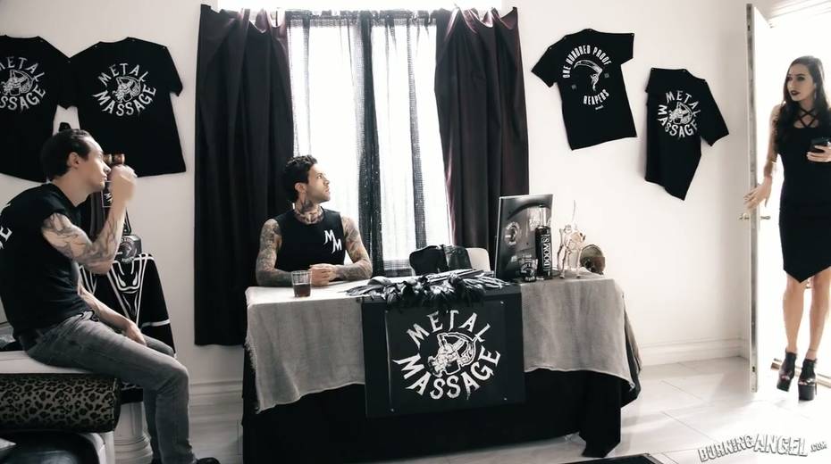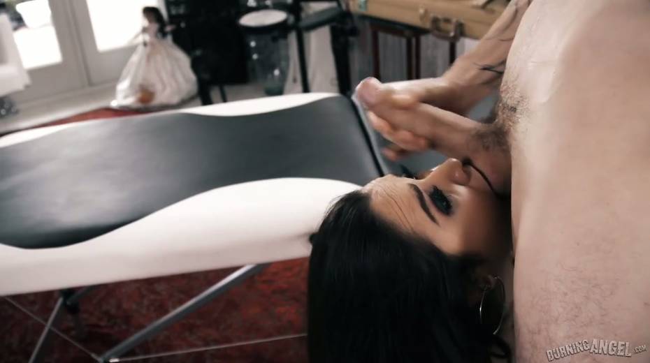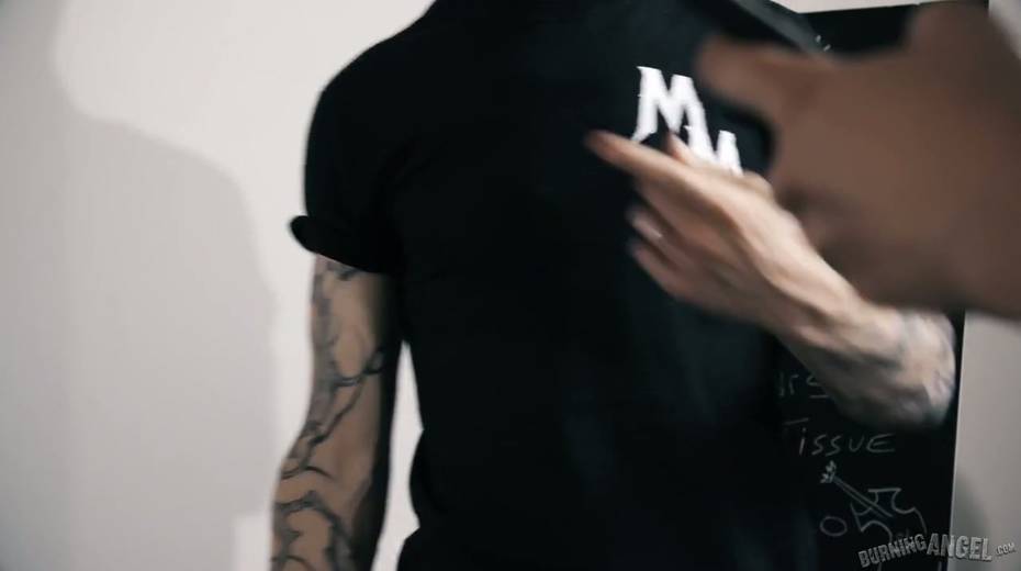 Mouth watering tattooed hooker Karlee Grey takes cum on her boobies