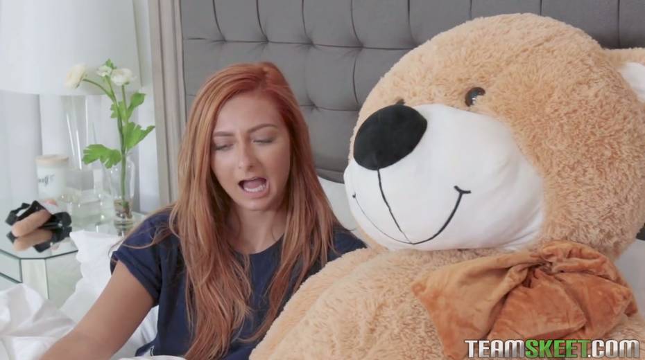 Naughty chick Kadence Marie fucks her teddy bear and horny boyfriend