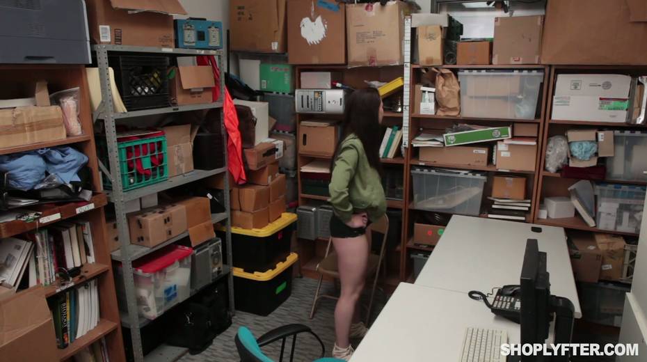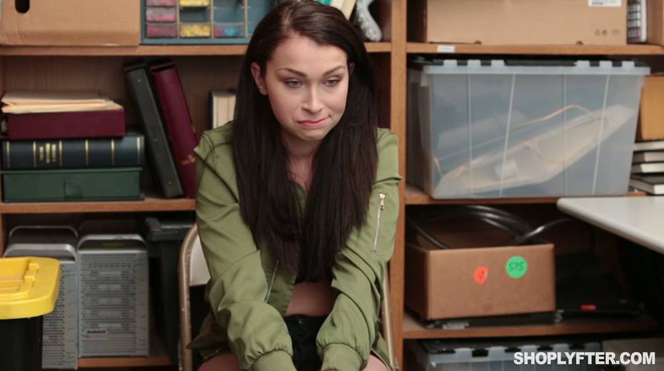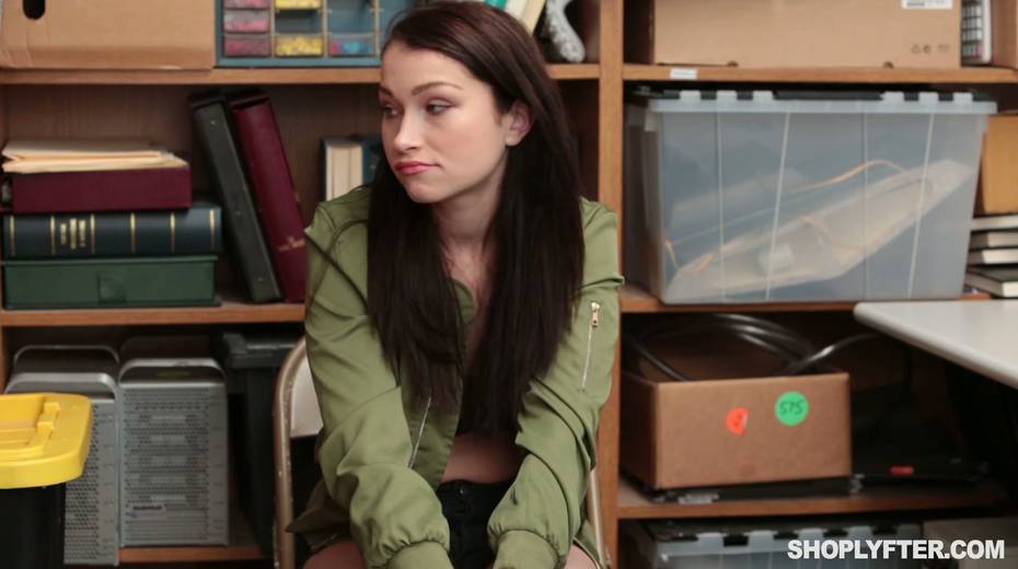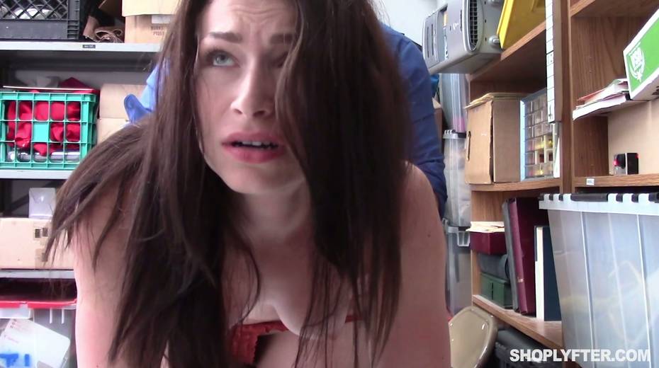 Shoplifter Jennifer Jacobs gets her face and pussy fucked in the back room