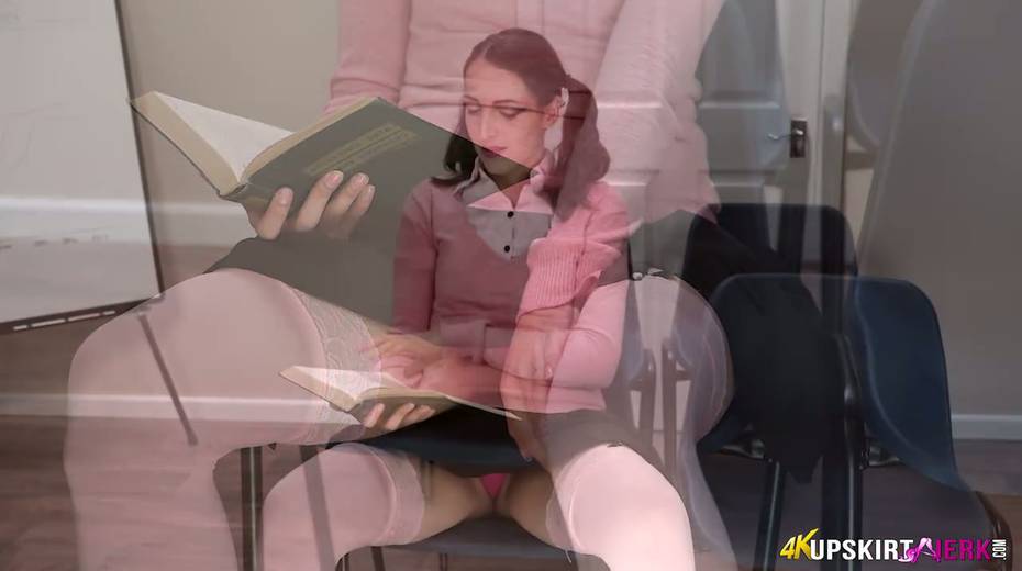 Pig-tailed hottie Liz Rainbow shows her charming pussy upskirt