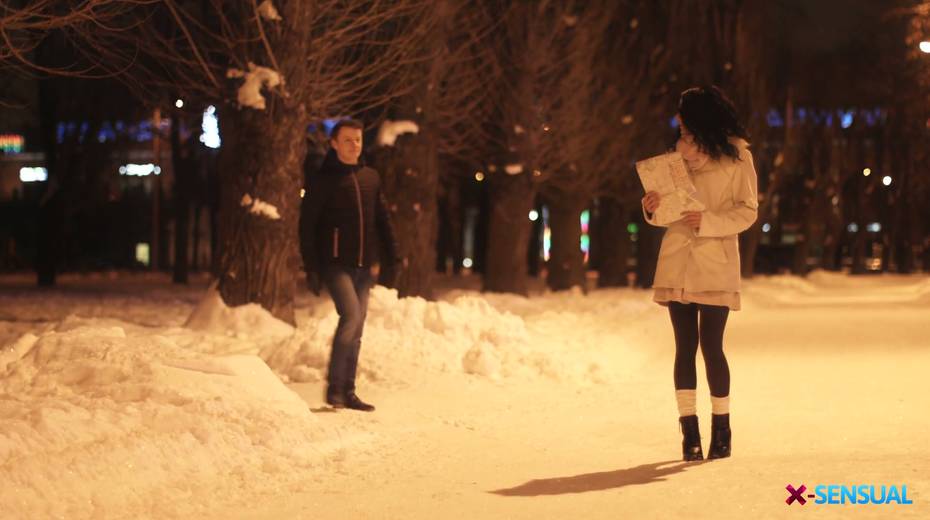 Naughty brunette Emily Bender is picked up and fucked by one stranger guy