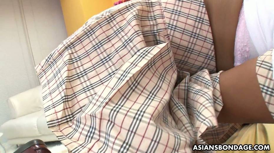 Asian student Tsubasa Miyashita is toying her sex-hungry hairy pussy