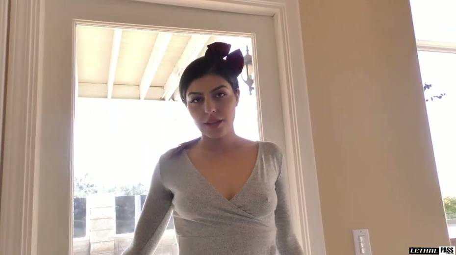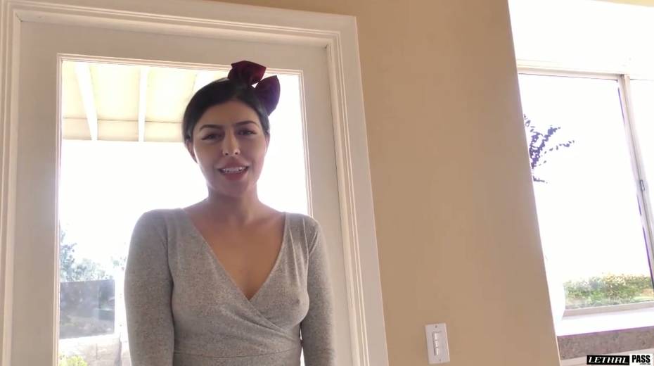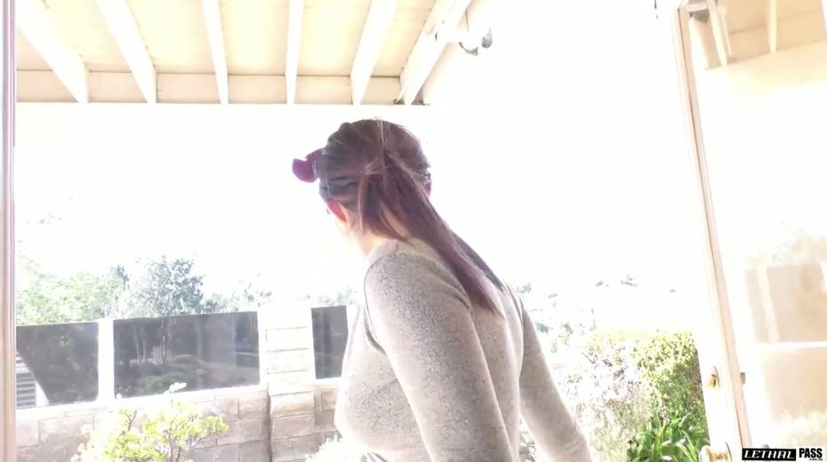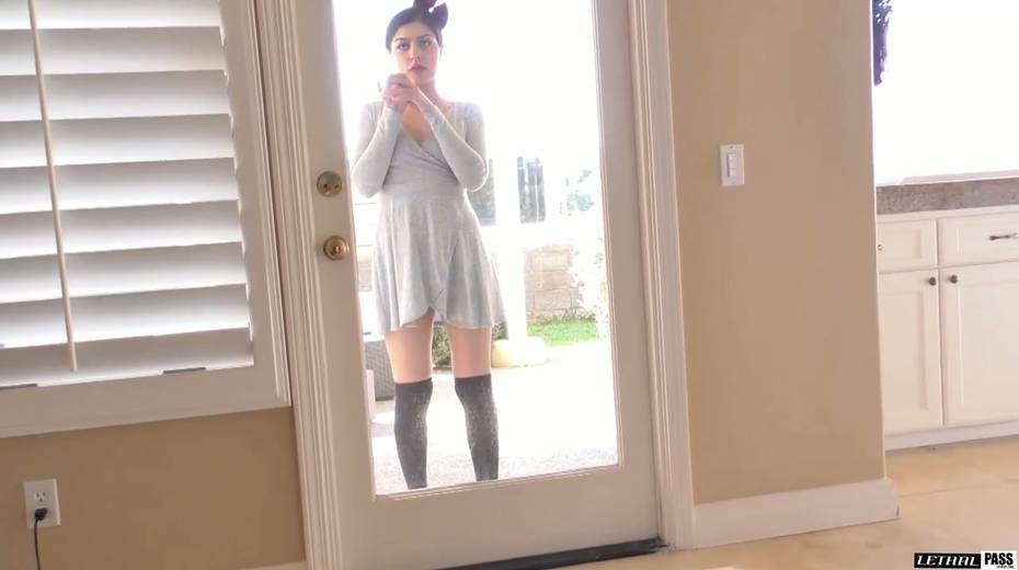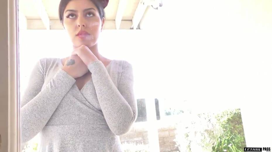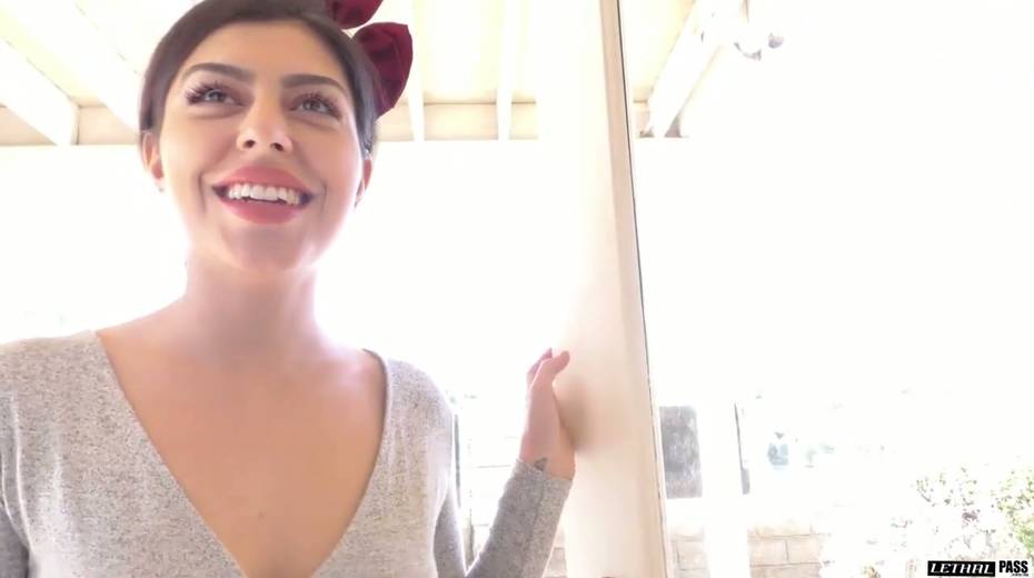 Brunette Audrey Royal is visiting her neighbor for a fresh sip of sperm