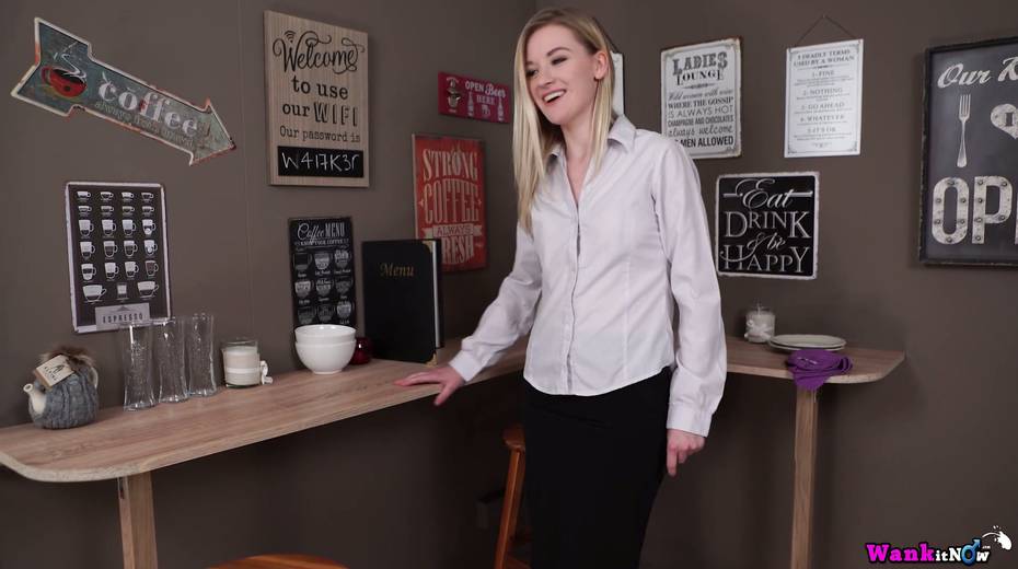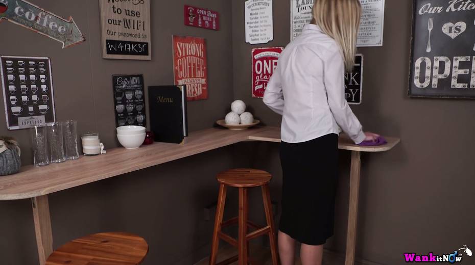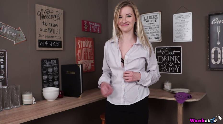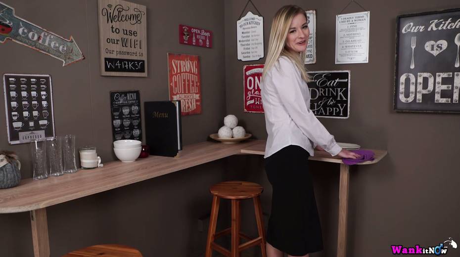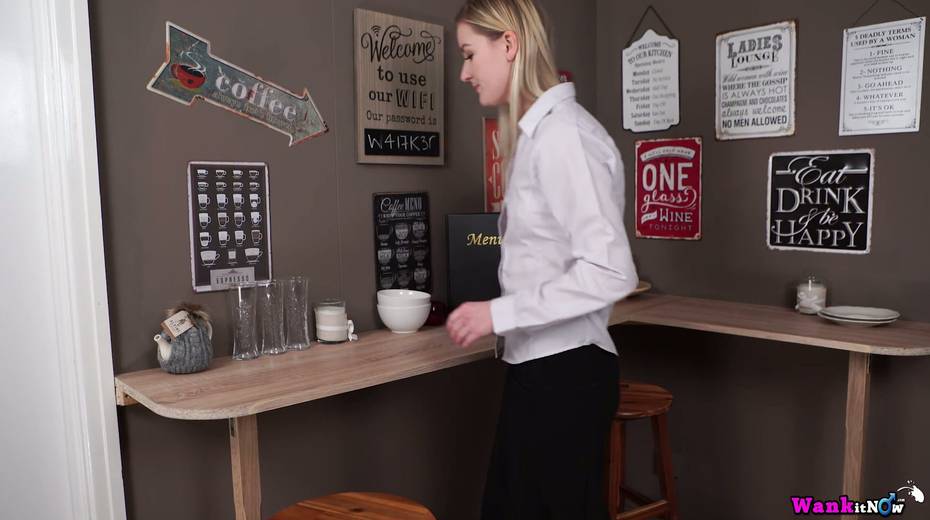 Naughty waitress in stockings and garters Gracie takes off her skirt and blouse