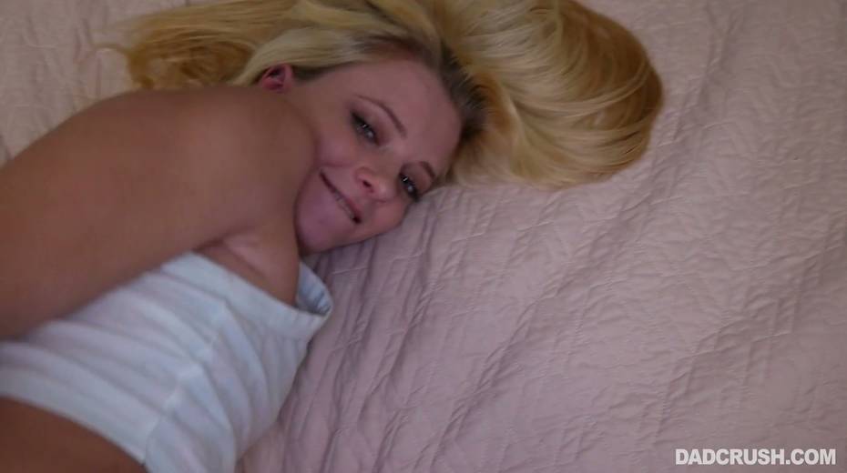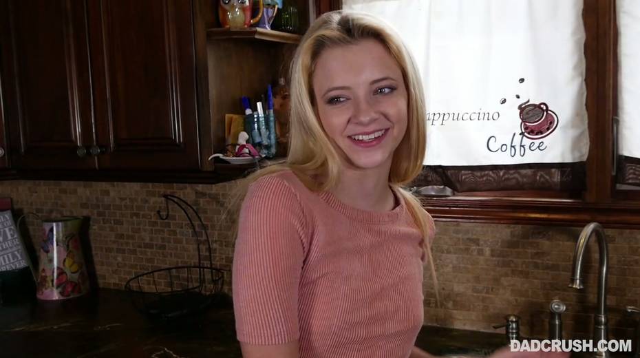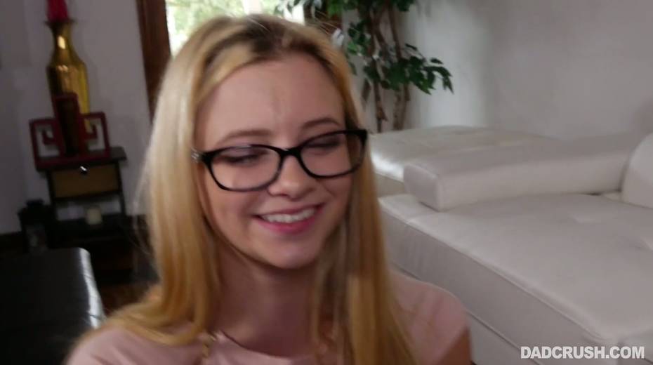 Blonde in glasses Riley Star gives a blowjob to her step daddy