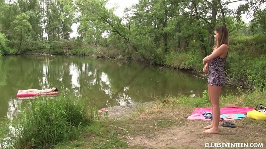 Cute lesbian babe Lexi Rain is making love with lovely babe by the lake