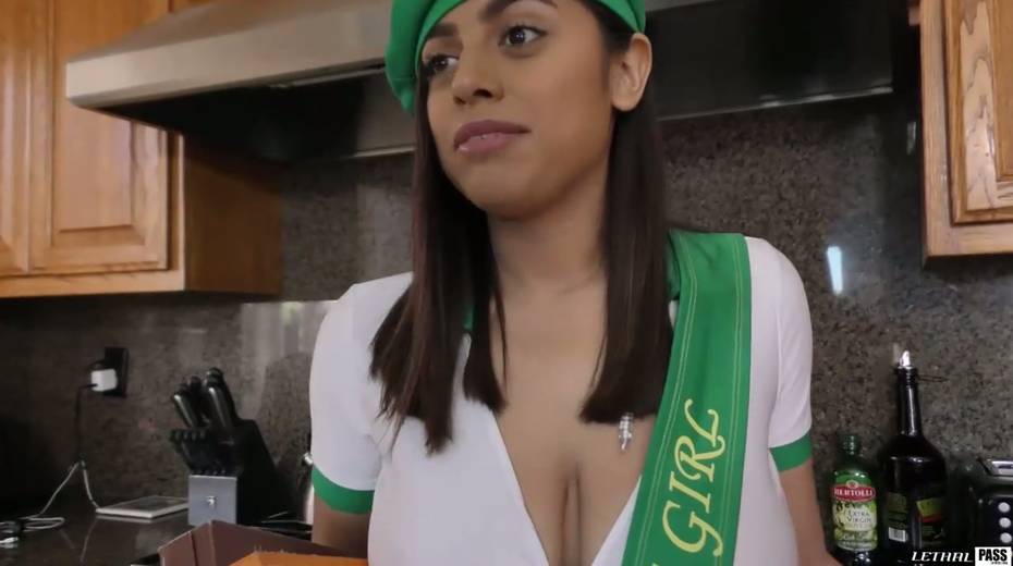 Full natural juggy babe Ella Knox gives the best ever blowjob and titjob