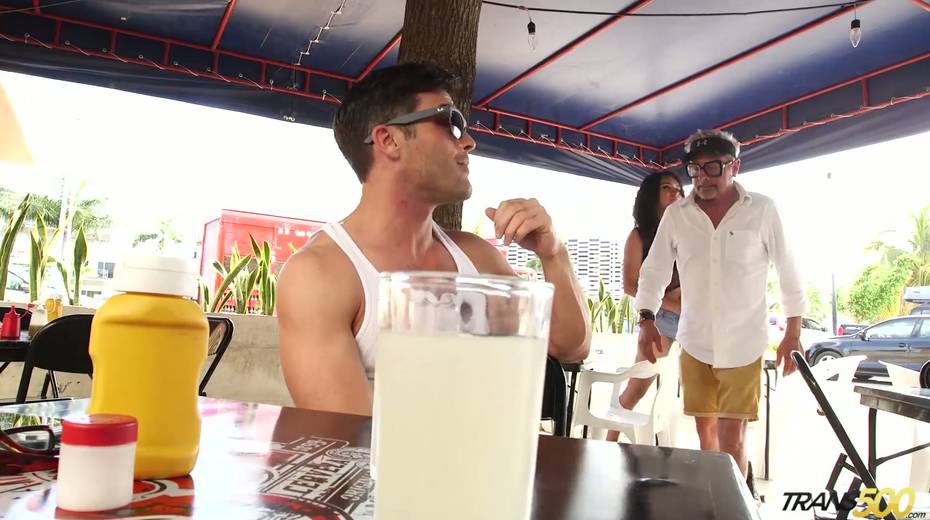 Kinky tranny Shaidel takes a big cock in stretched butt hole in cowgirl pose