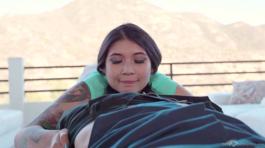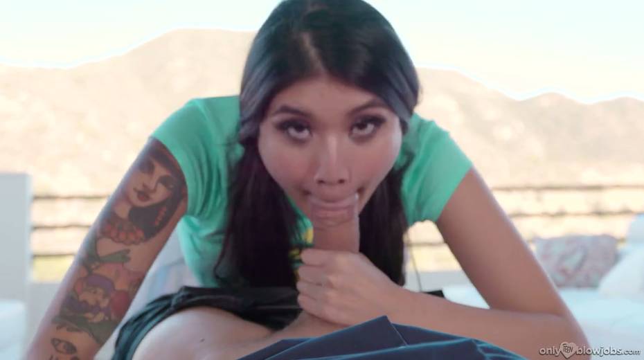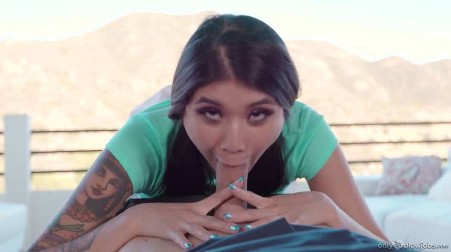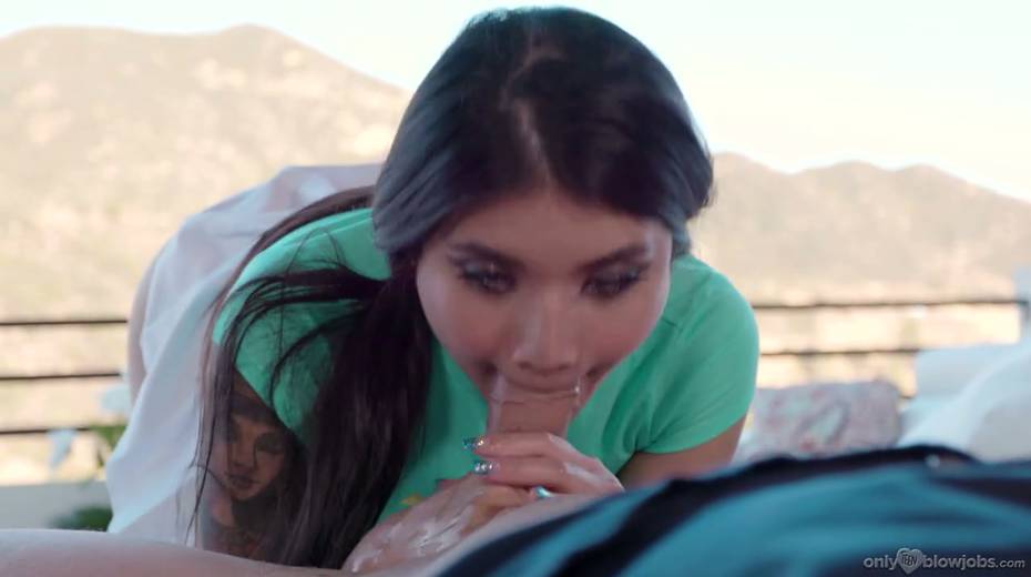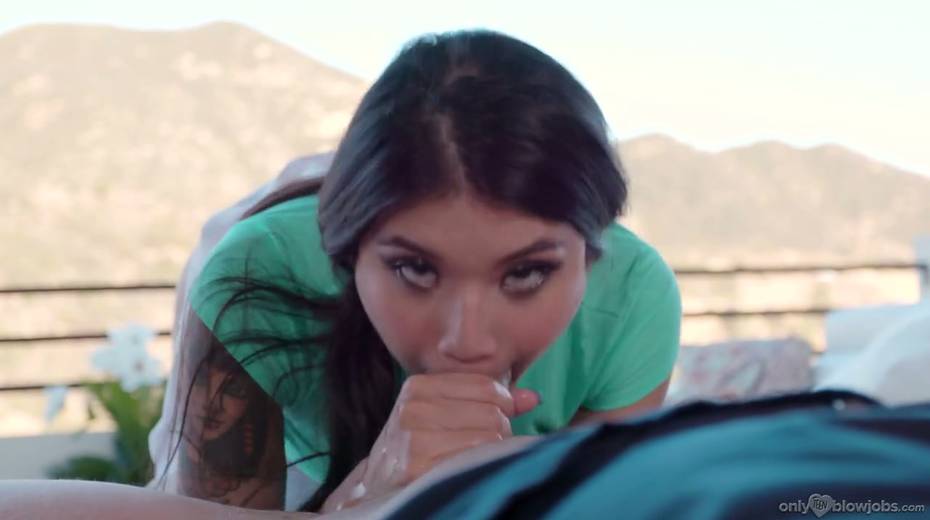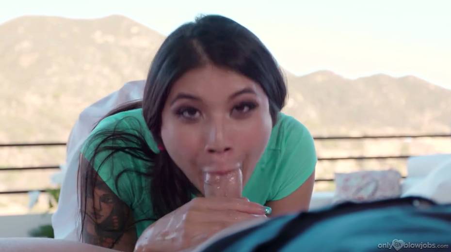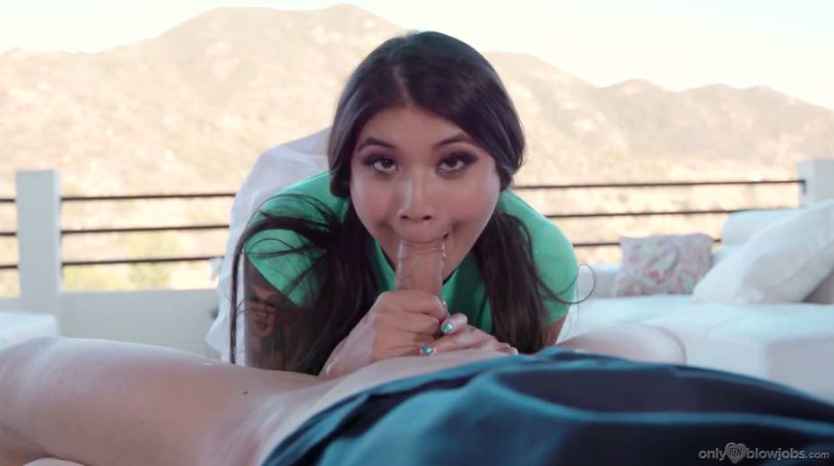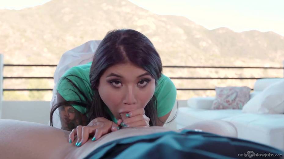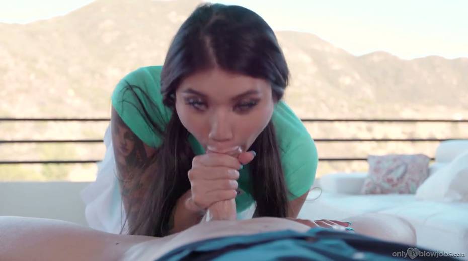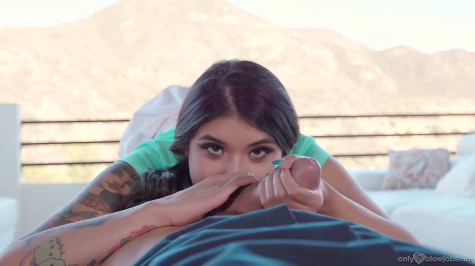 Sizzling pigtailed brunette Brenna Sparks gives a great POV blowjob
