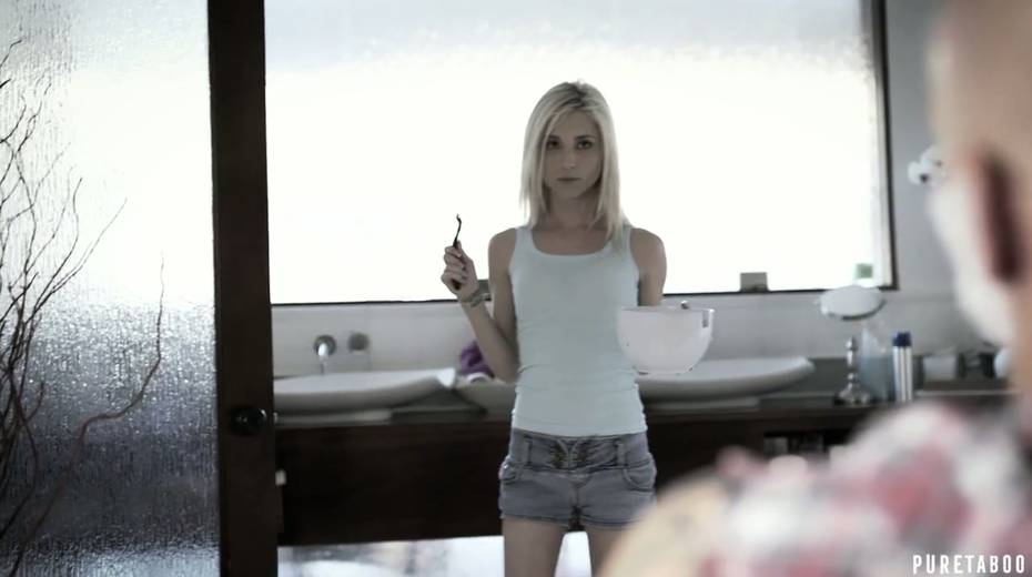 Petite blond step daughter Piper Perri is fucked by well endowed young step daddy