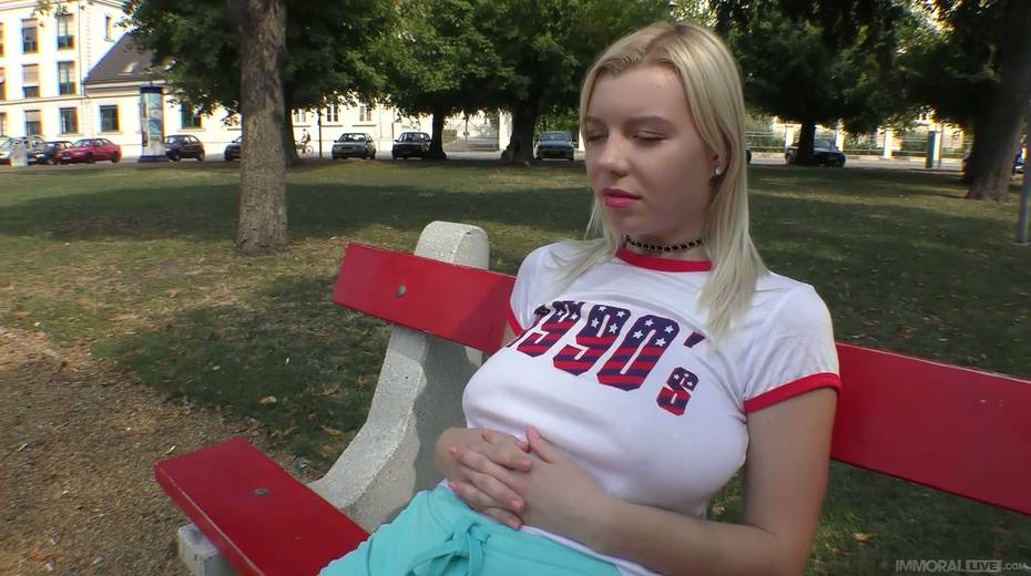 Big tittied blonde Mary Monroe is picked up and fucked by stranger