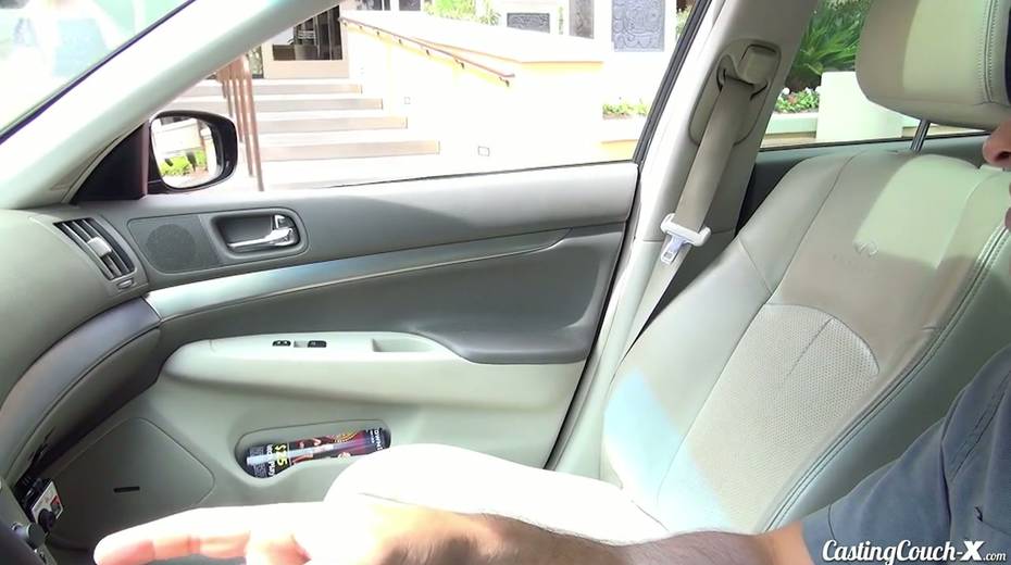Sultry chick Amy Summers shows her pussy in the car and gets fucked indoor