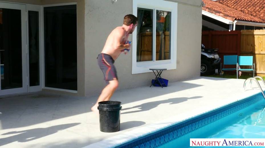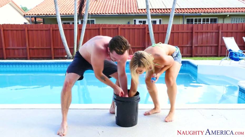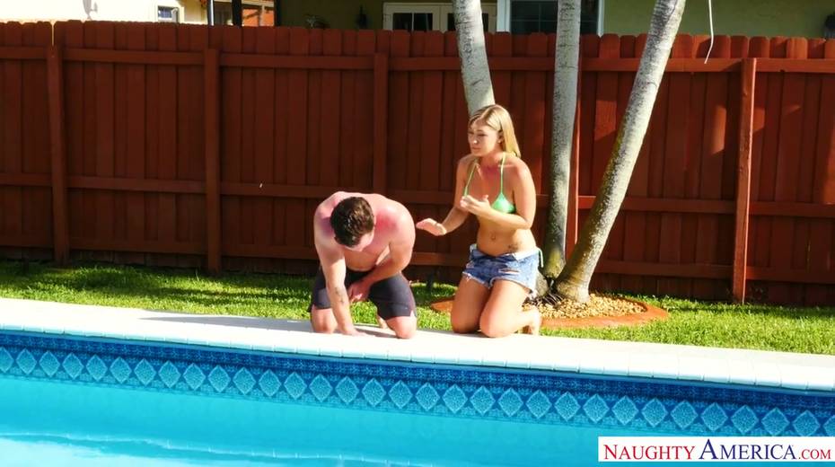 Lewd blonde in bikini Addison Lee gets intimate with one horny dude by the poolside