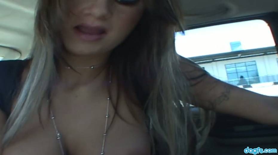 Tattooed jerk picks up super busty chick and fucks her face in the car