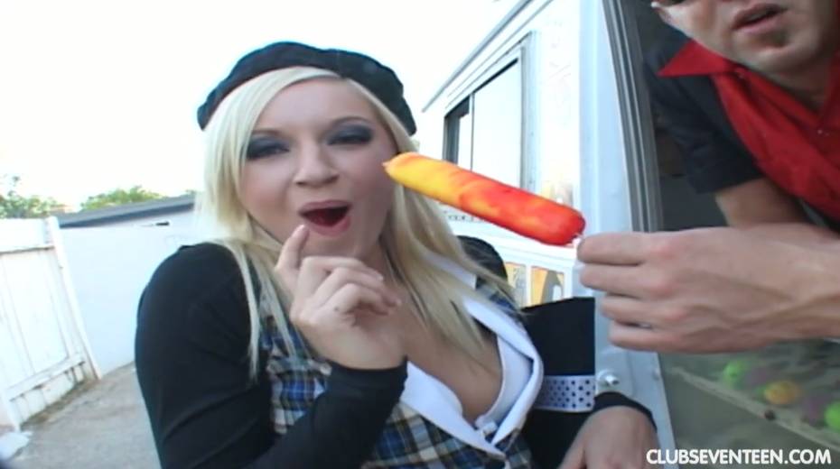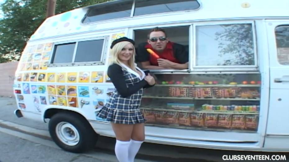 Filthy chick in short skirt Kylee Reese gets fucked for ice cream