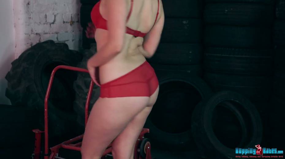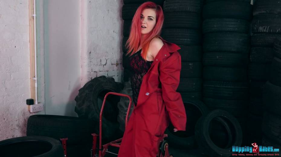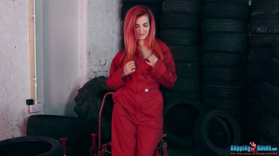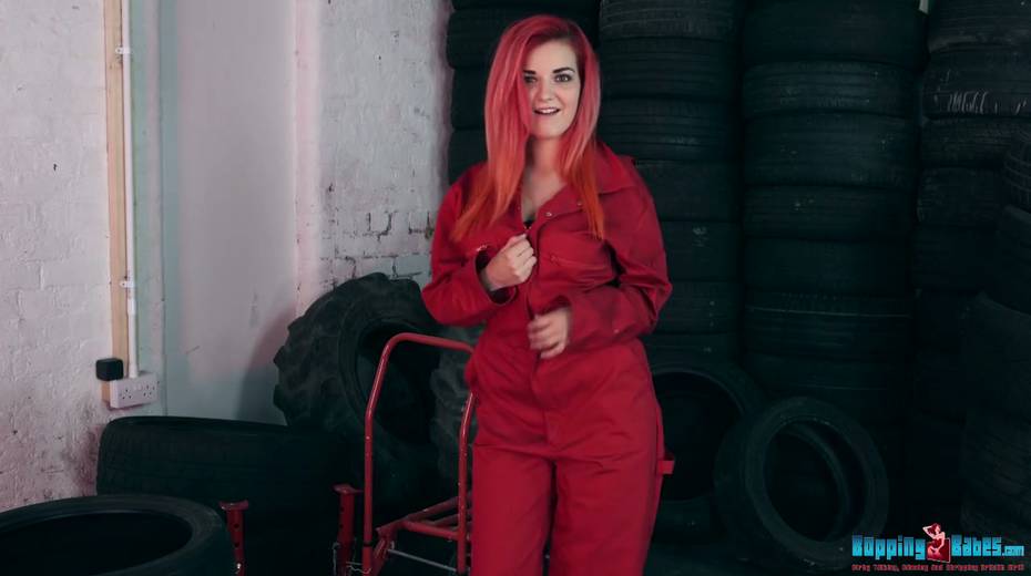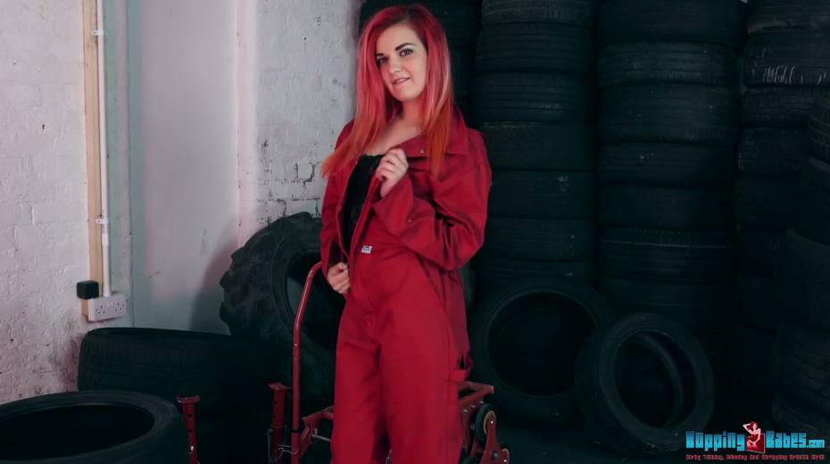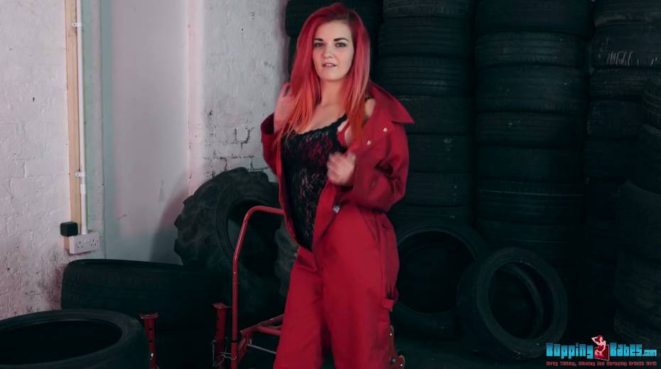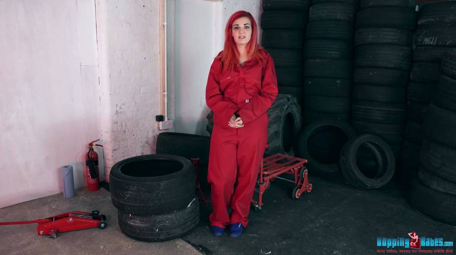 Red haired hooker Dolly shows striptease in the tire shop