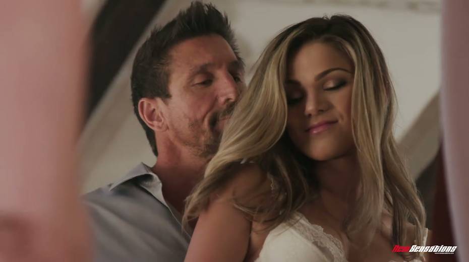 Sexy step daughter in white lingerie and stockings Athena Faris gets fucked