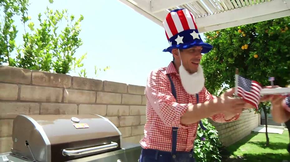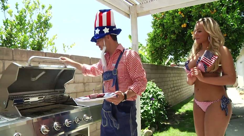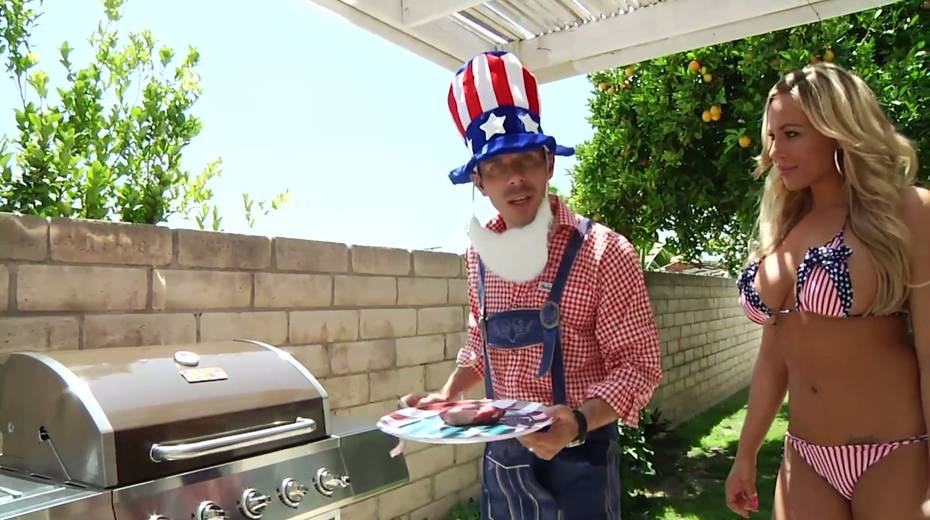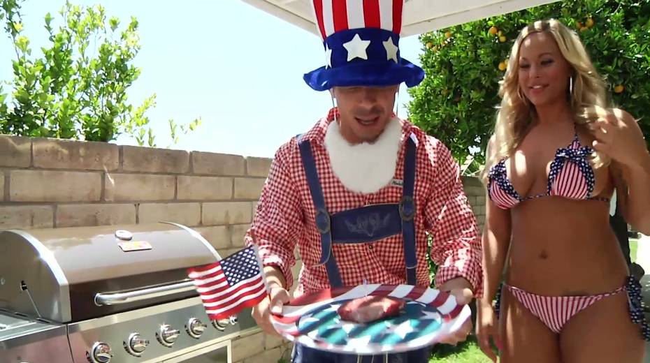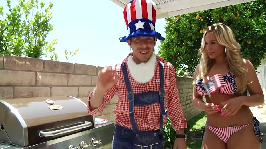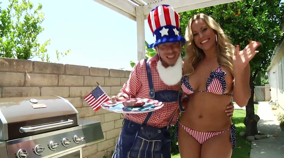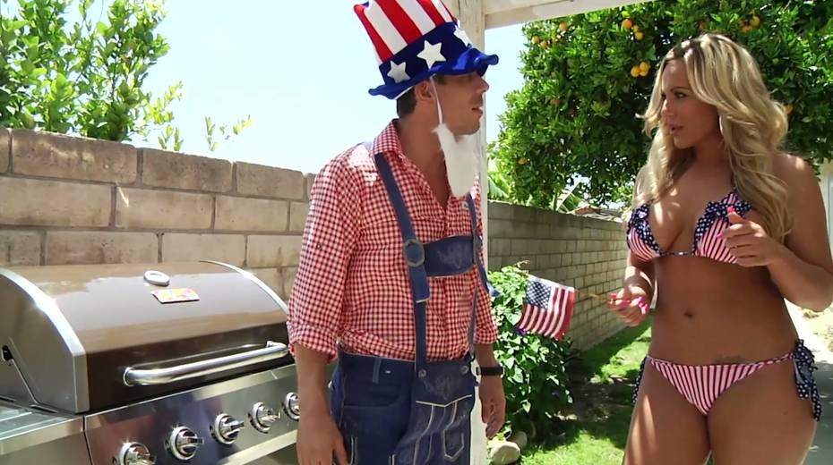 Blonde in patriotic bikini Olivia Austin hooks up with one kinky dude