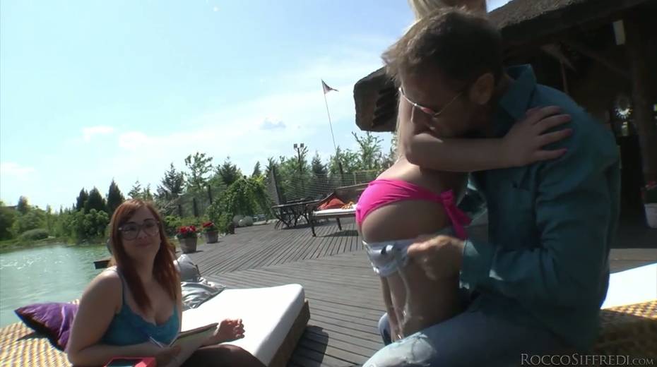 Horny well endowed Rocco fucks two bodacious oiled up hookers