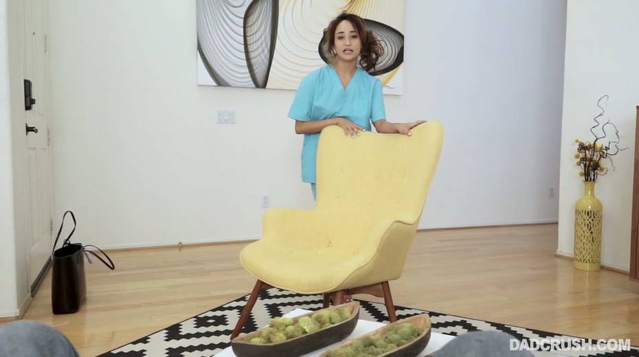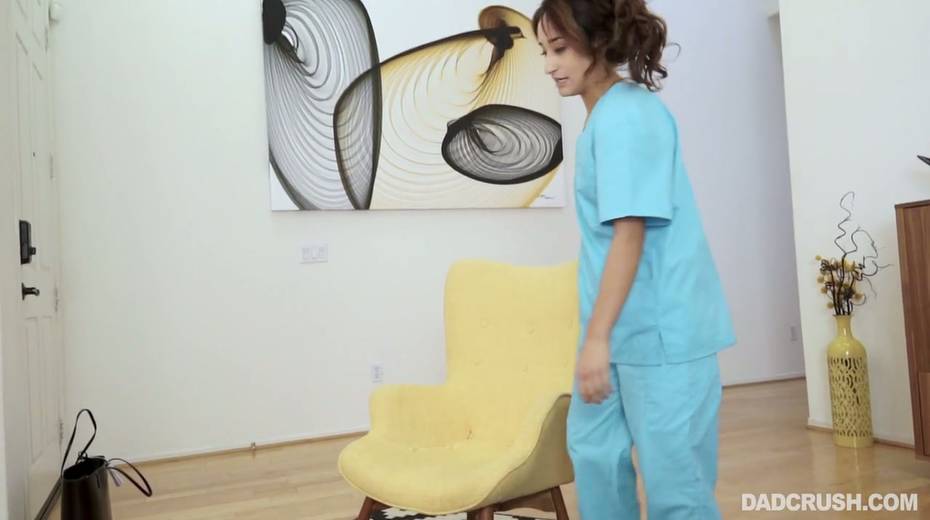 Lovely teen gives a blowjob and rides a dick of her step daddy