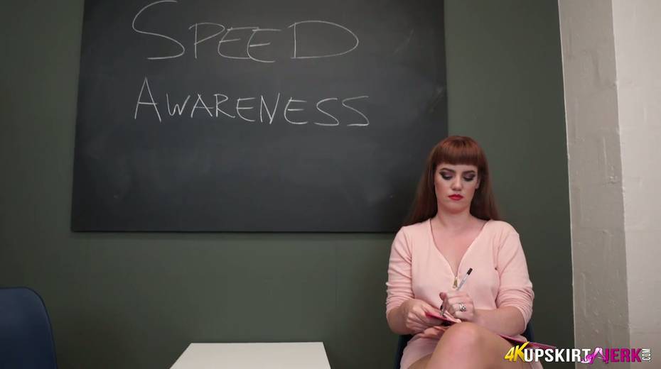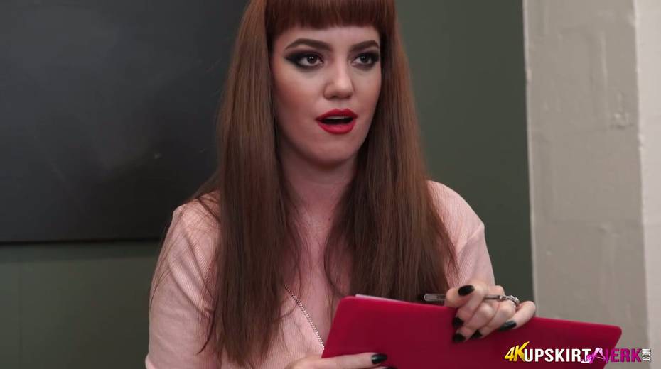 Mouth watering red haired teacher is flashing her plump peachy pussy