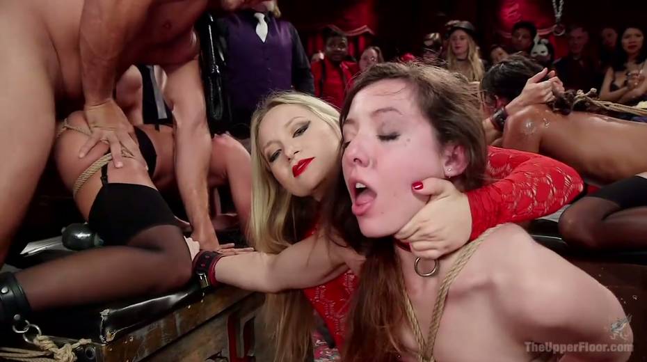 Bondage hooker Aiden Starr gets her pussy punished in hot BDSM orgy
