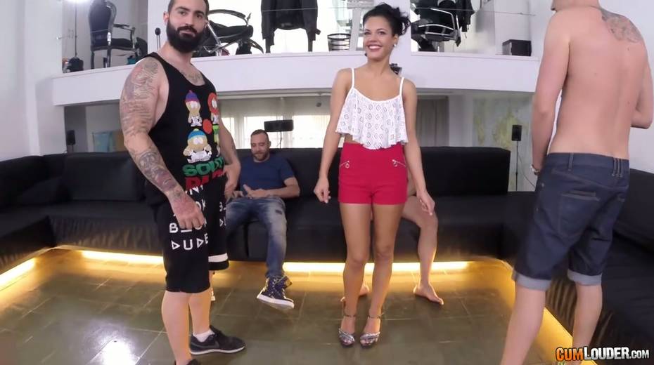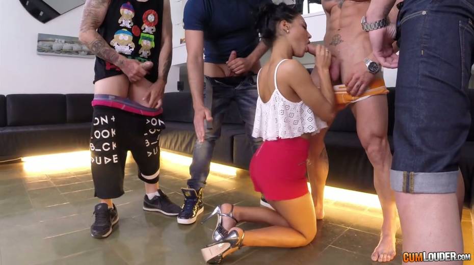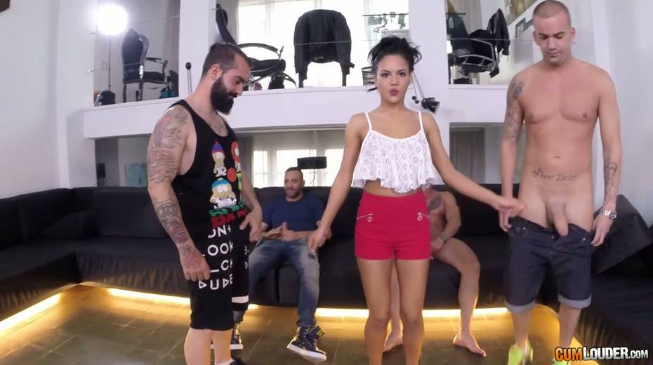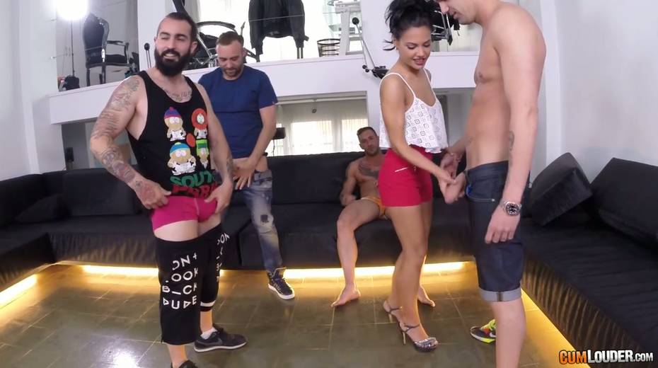 Several dudes pick up the most beautiful chick for hardcore blowbang
